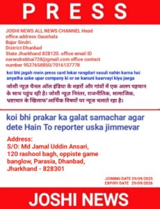 JOSHI NEWS ALL INDIA PRESS REPORTER I CARD
