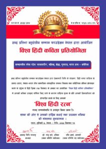 नेपाल की प्रसिद्ध संस्था शब्द प्रतिभा बहुक्षेत्रीय सम्मान फाउन्डेशन, संस्थापक अध्यक्षश्री आनंद गिरि मायालु द्वारा, हिंदी दिवस 14 सितंबर,२०२५ के सन्दर्भ में, अंतरराष्ट्रीय स्तर की, विश्व हिंदी कविता प्रतियोगिताका आयोजन किया गया था।