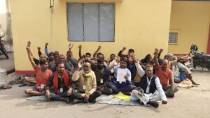 सिंदरी । कांड्रा स्थित एफसीआई गोदाम में दो महीने के बकाया वेतन को लेकर ठेकाश्रमिकों ने मंगलवार से हड़ताल कर दिया था। इससे लगभग 9 ट्रकों में लोड 10 टन खाद्यान्न अनलोड नहीं हो सका और चालकों व सहचालकों को काफी ठंड में इसकी सुरक्षा करनी पड़ी। हालांकि बुधवार की देर रात संवेदक विष्णु कांत पाठक द्वारा ₹ 6.25 की दर से 28 श्रमिकों का बकाया वेतन भुगतान कर दिया।