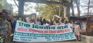 सरिया को जिला बनाने की मांग तेज: त्रिभुवन मंडल के नेतृत्व में फिर धरना, सैकड़ों लोग शामिल