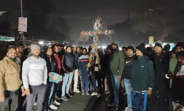 बांग्लादेश हिंदुओं की निर्मम हत्या पर बजरंग दल ने सिंदरी में जताया विरोध