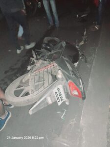 जोड़ापोखर सड़क किनारे खड़े भारी वाहनों के कारण भीषण टक्कर, दो युवक गंभीर रूप से घायल ।*