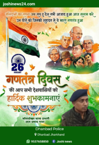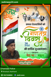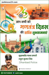 गणतंत्र दिवस की हार्दिक शुभकामनाएं धनबाद पुलिस की ओर से