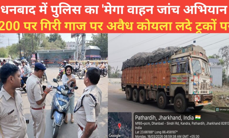 धनबाद में पुलिस का ‘मेगा वाहन जांच अभियान 200 पर गिरी गाज पर अवैध कोयला लदे ट्रकों पर चुप्पी क्यों