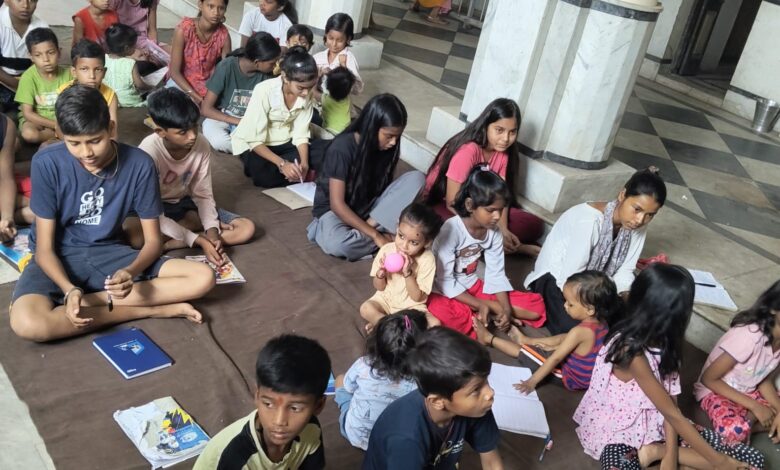 का अभ्यास कराया गया ।इसके अलावा संस्कृत में अंताक्षरी पहाड़ा सभी देवी देवताओं के प्रति श्लोक इत्यादि पढ़ाया गया।छोटे छोटे बच्चे बच्चियां जब एक स्वर से गायत्री मंत्र का पाठ कर रहे थे तो सारा वातावरण वैदिक सा संस्कृति से गूंज रहा था ।